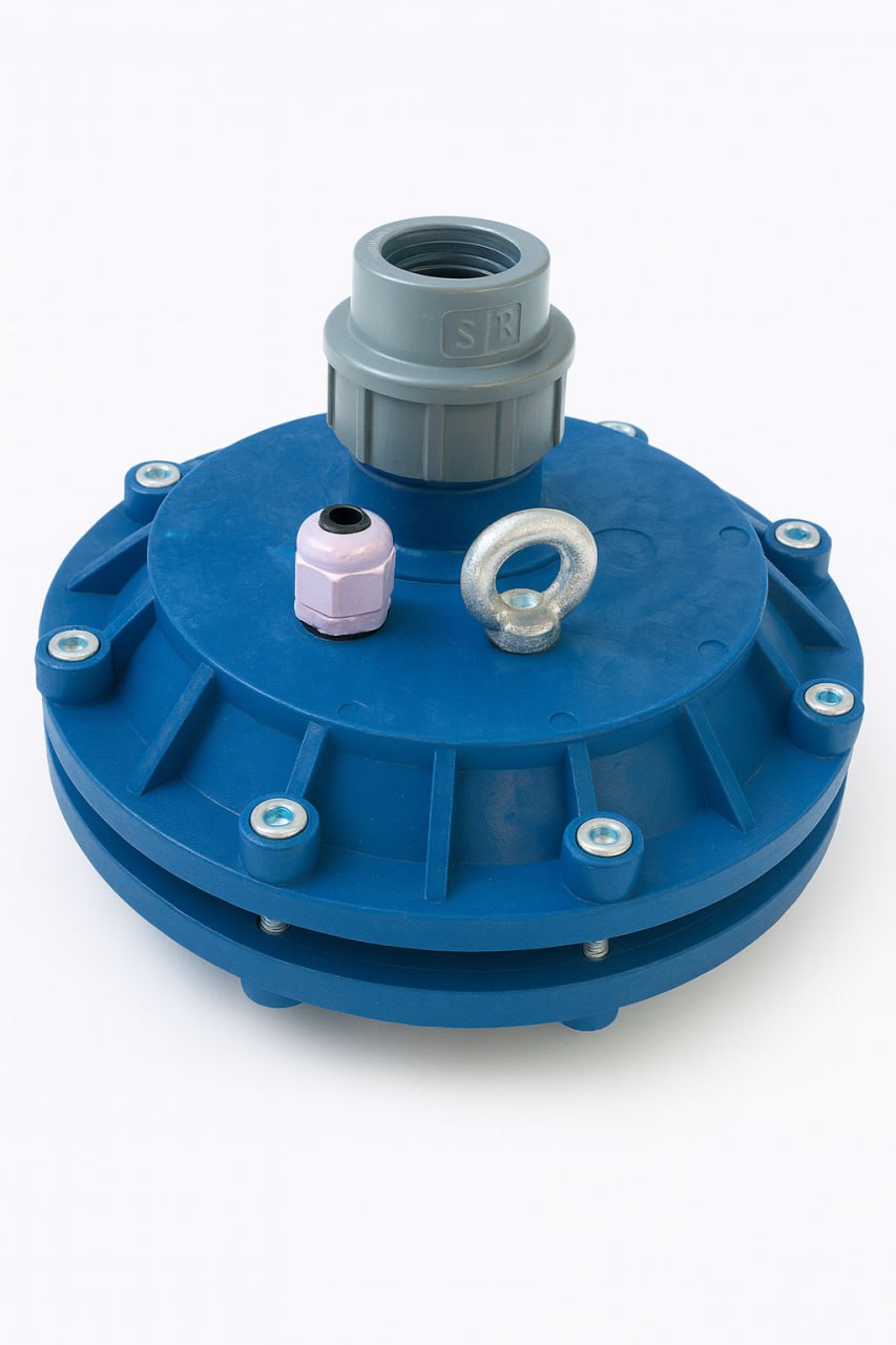 Głowica studzienna hermetyczna służy do uszczelnienia urządzenia pobierającego wodę i pełni funkcję konstrukcji wsporczej urządzeń pobierających wodę. Przez pokrywę produktu przechodzi kabel zasilania elektrycznego pompy, która ma wbudowany adapter rury spustowej do dystrybucji systemu zaopatrzenia w wodę. Maksymalna dopuszczalna waga – 200 kg.